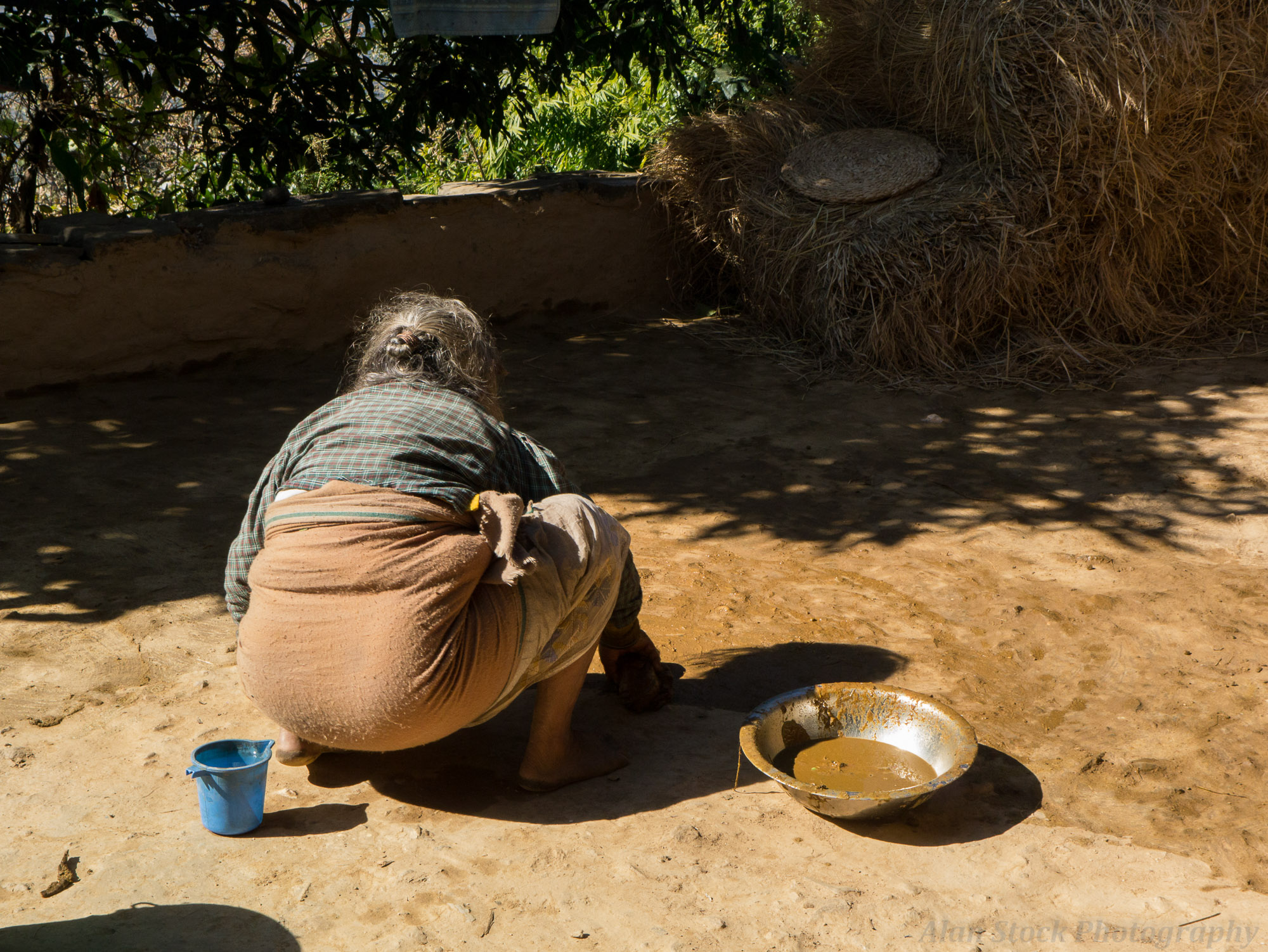 alanstockphotography-1090747 Published September 17, 2016 at 2000 × 1502 in Photo Documentary – Karmidanda – Nepalese Mountain Village Ama, Jhabraj’s mother, at over 80 years old still works hard every day. Here she spreads liquid cow dung on the yard to aid weathering.
